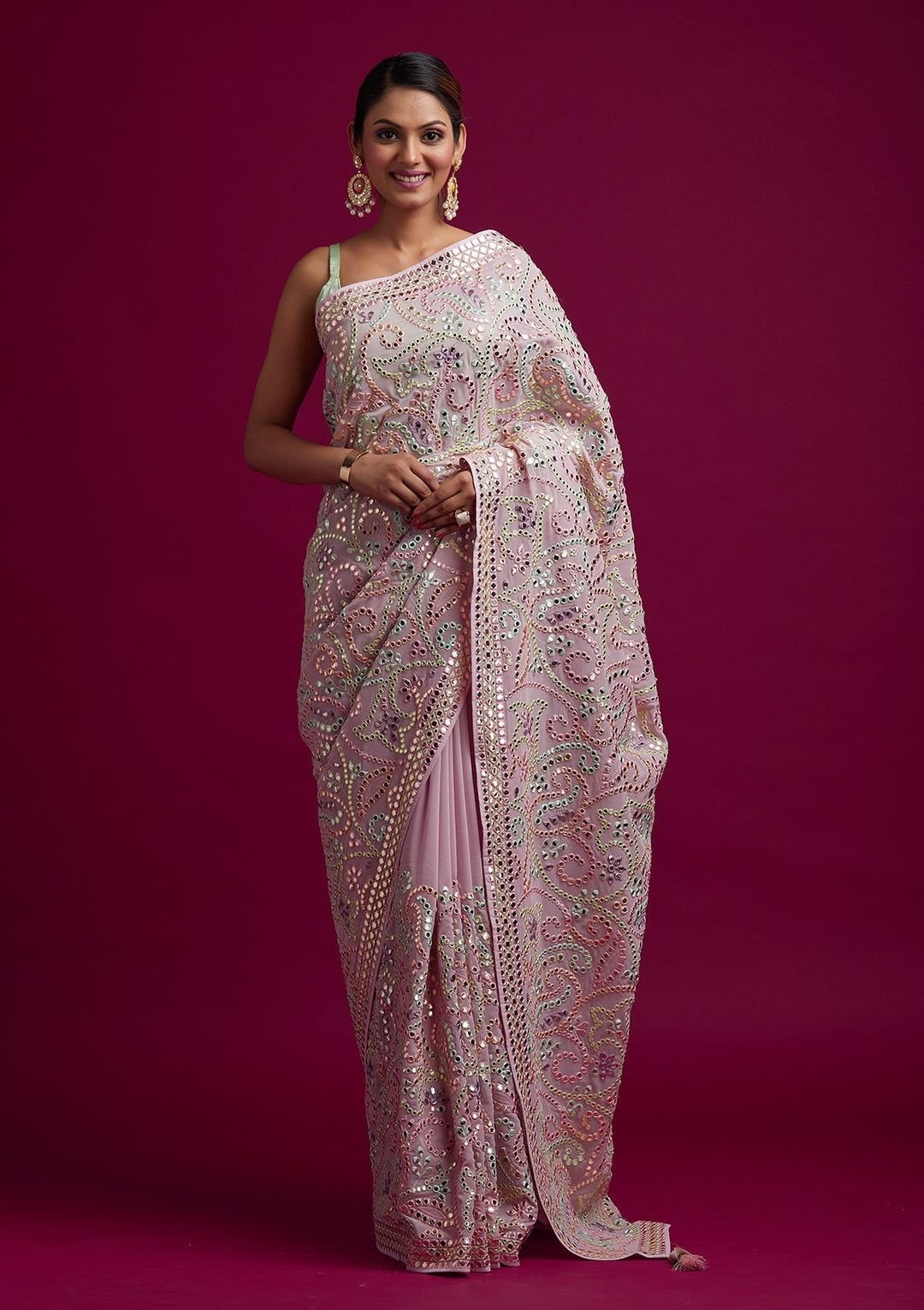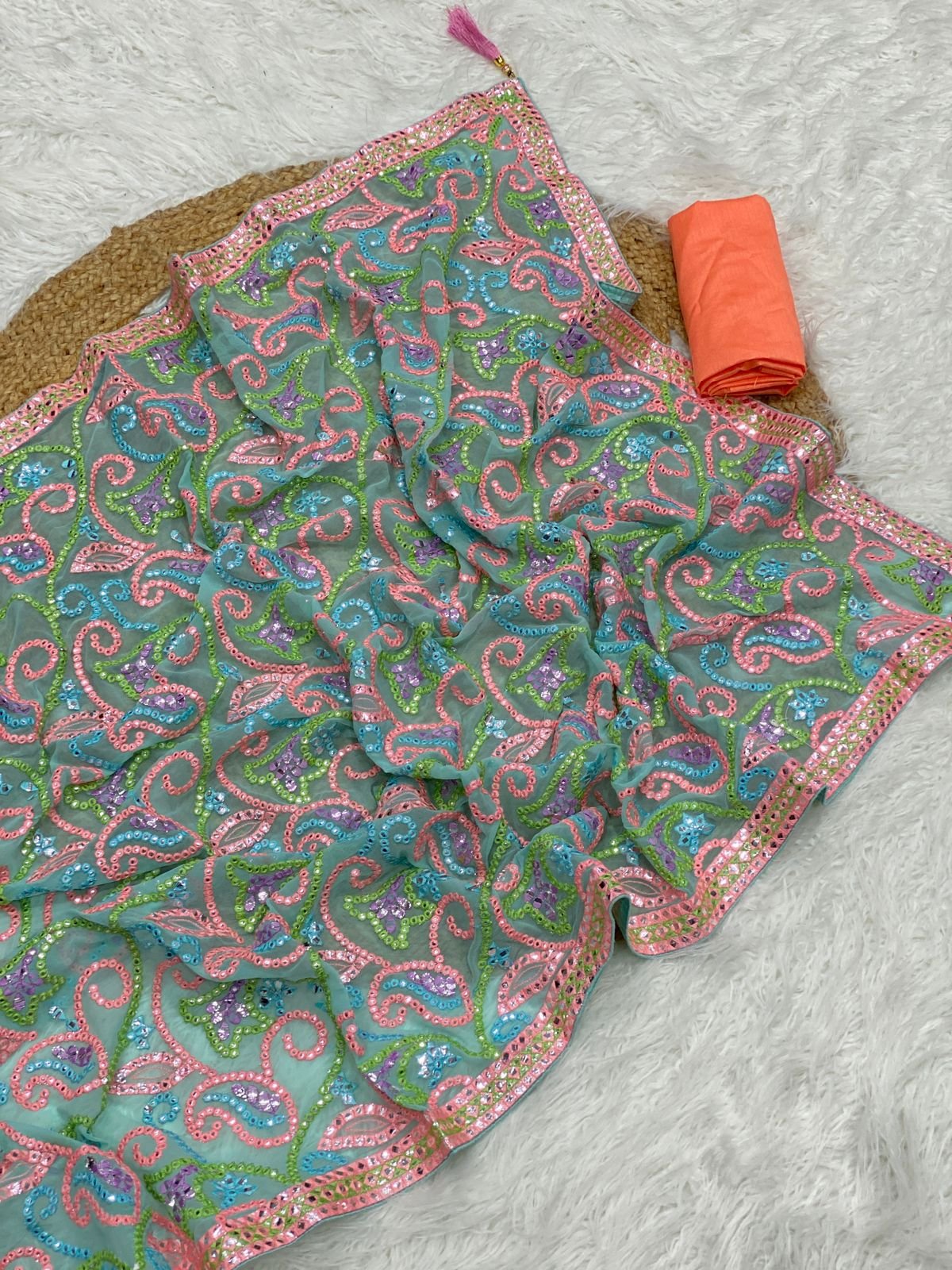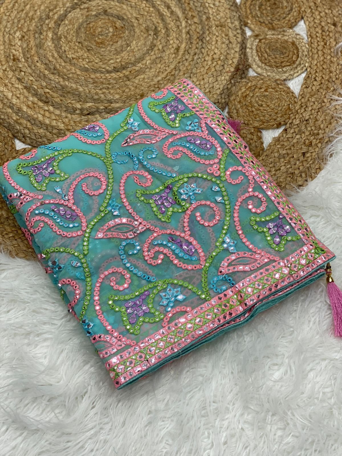 *Shrug* – fox georgette shrug with real mirror handwork border